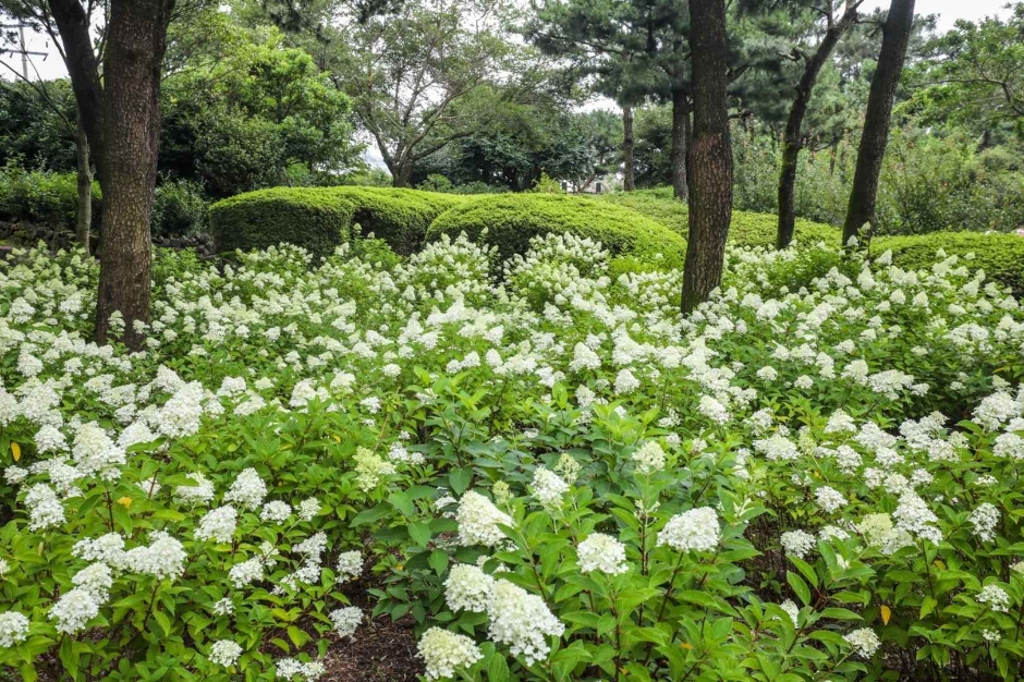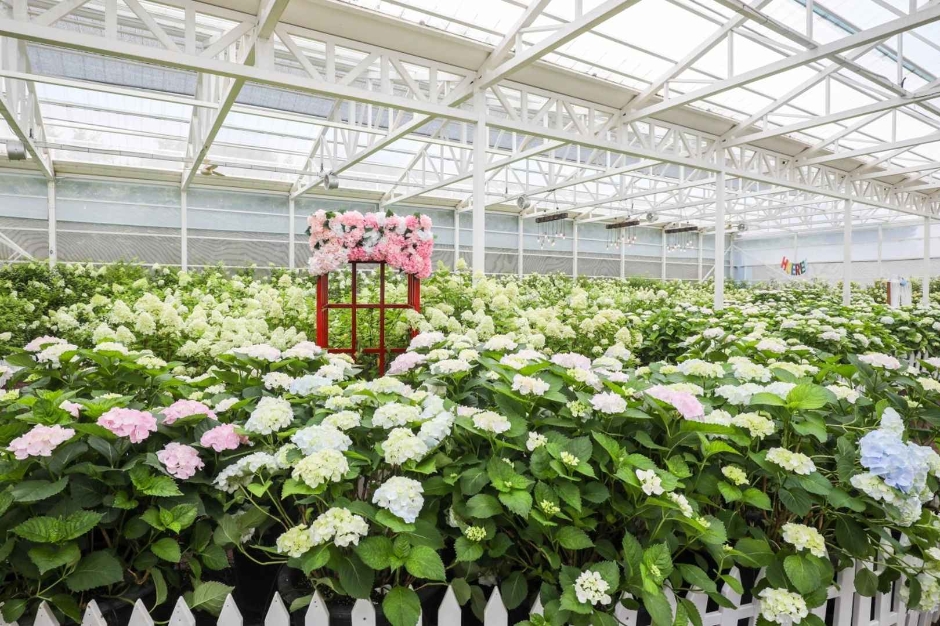 다양한 유럽 수국을 온실, 카페정원, 유럽수국오름 등을